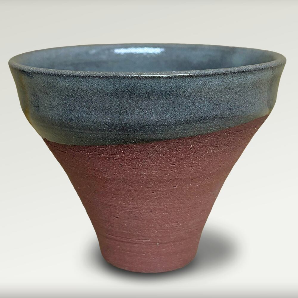 縄文土器の形のぐい呑み。天然の土灰釉薬を使用しています。